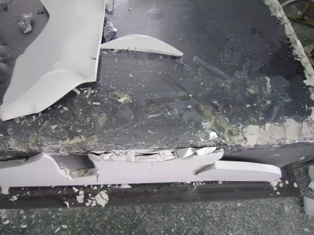 1)坩堝隱裂。用來(lái)盛放硅錠的坩堝為石英陶瓷材料,其制作方式有注漿成型和注凝成型兩種方式,但不論哪種方式制作的坩堝,都會(huì)存在隱裂,氣孔等缺陷,這些坩堝在出廠以前一般都會(huì)經(jīng)歷兩道以上的采用顯影液透光檢查過(guò)程,但仍可能會(huì)有漏檢的坩堝,另外坩堝在運(yùn)輸過(guò)程中或搬運(yùn)過(guò)程中會(huì)遇到震動(dòng)或磕碰,都會(huì)導(dǎo)致坩堝產(chǎn)生隱裂,如果這些缺陷在裝料前沒(méi)有檢測(cè)到,很有可能在熔化過(guò)程中出現(xiàn)硅液溢流現(xiàn)象。因此,坩堝拆箱以后,在噴涂前應(yīng)該嚴(yán)格檢測(cè),使用強(qiáng)光燈源對(duì)坩堝五個(gè)面透光檢測(cè)是一種較為方便有效的方法。