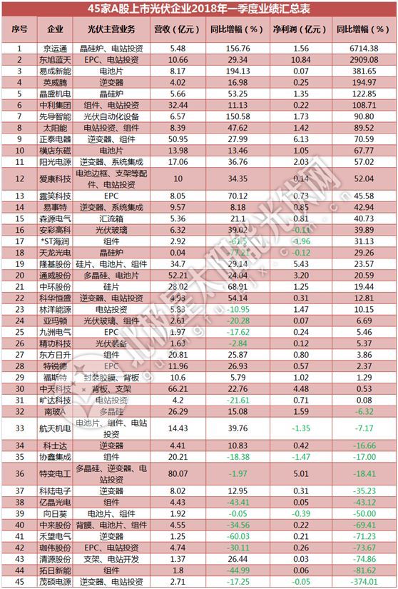 一季度45家光伏企業(yè)業(yè)績榜單登場:超八成飄紅,兩級分化現(xiàn)象嚴(yán)重