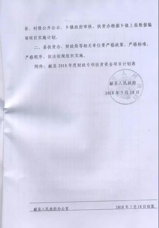 近日,河北滄州獻縣人民政府發(fā)布《關于安排2018年度財政扶貧資金使用計劃有關問題的批復》,其中指出,同意安排財政資金2079 7萬元,將未享
