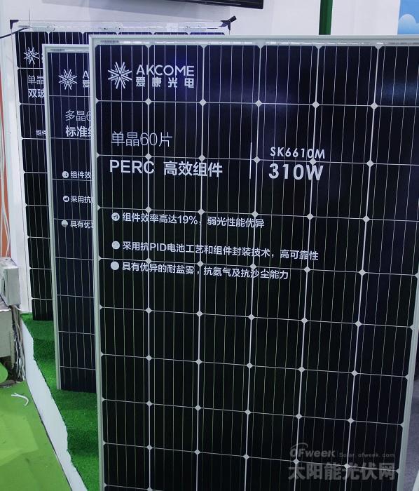 愛康在本次展會展出了多款組件產(chǎn)品, 其中SK6610M單晶防塵五柵組件獨具特色。其組件效率達17.8%,具有弱光性能優(yōu)異、抗壓能力強、高效清潔能力的優(yōu)點。