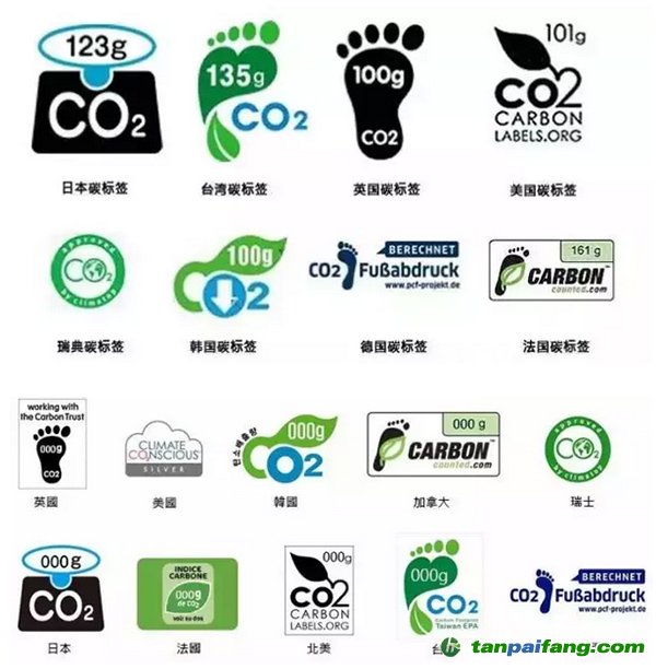 各國(guó)/地區(qū)產(chǎn)品碳標(biāo)識(shí)圖案