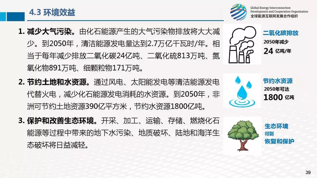 在報告中,介紹了非洲清潔能源基地布局、非洲電網(wǎng)互聯(lián)規(guī)劃方案、重點互聯(lián)互通工程以及非洲能源互聯(lián)網(wǎng)能達到的綜合效益。研究成果表明,清潔主導、電為中心、互聯(lián)互通、大范圍配置,是未來非洲能源發(fā)展的大趨勢、大方向,需要加快構(gòu)建非洲能源互聯(lián)網(wǎng)。