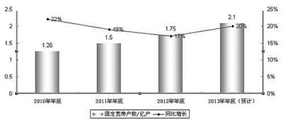 2010~2013年我國固定寬帶接入用戶數(shù)統(tǒng)計