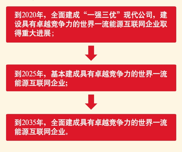 新時代公司戰(zhàn)略目標(biāo)是:建設(shè)具有卓越競爭力的世界一流能源互聯(lián)網(wǎng)企業(yè)。確立這一戰(zhàn)略目標(biāo),是貫徹黨的十九大精神和習(xí)近平總書記能源戰(zhàn)略思想的必然要求,是積極適應(yīng)蓬勃推進(jìn)的能源生產(chǎn)和消費革命新形勢的必然要求,是把握能源革命和數(shù)字革命深度融合趨勢、爭取戰(zhàn)略主動的必然要求。卓越競爭力主要體現(xiàn)在全球領(lǐng)先的大電網(wǎng)安全控制能力、能源資源配置能力、自主創(chuàng)新能力、優(yōu)質(zhì)服務(wù)能力、“一帶一路”開拓能力、企業(yè)可持續(xù)發(fā)展能力。以新能源大規(guī)模開發(fā)利用為標(biāo)志,以再電氣化為根本路徑的新一輪能源革命,正在全球范圍深入發(fā)展。電網(wǎng)連接能源生產(chǎn)和消費,是能源輸送和轉(zhuǎn)換利用的網(wǎng)絡(luò)樞紐,處于能源革命的中心環(huán)節(jié)。未來的電網(wǎng),從技術(shù)特征上看,將向新一代電力系統(tǒng)演進(jìn);從功能形態(tài)上看,將向能源互聯(lián)網(wǎng)演進(jìn)。建設(shè)以堅強智能電網(wǎng)為核心的新一代電力系統(tǒng),進(jìn)而構(gòu)建融合多能轉(zhuǎn)換技術(shù)、智能控制技術(shù)和現(xiàn)代信息技術(shù),廣域泛在、開放共享的能源互聯(lián)網(wǎng),是電網(wǎng)發(fā)展的必然趨勢。