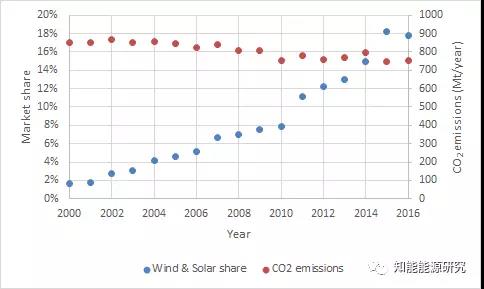 1、可再生能源發(fā)電量以令人印象深刻的速度發(fā)展,但CO2自2008/2009金融危機(jī)后排放量幾乎沒有變化。