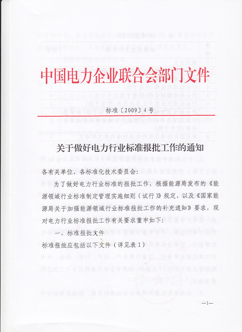 關(guān)于做好電力行業(yè)標(biāo)準(zhǔn)報(bào)批工作的通知