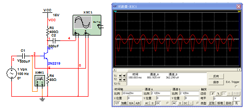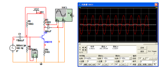 A(甲)類放大器的仿真圖形為下圖: