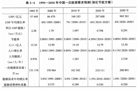 1)根據(jù)中國(guó)政府制定的經(jīng)濟(jì)發(fā)展規(guī)劃,設(shè)定1995-2000年GNP年均增長(zhǎng)率為8%,2000-2010年為7%。根據(jù)未來我國(guó)經(jīng)濟(jì)發(fā)展前景,設(shè)定2010-2020年為6%,2020-2050年為4%。