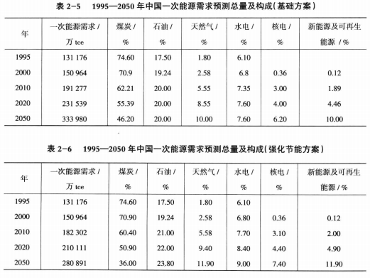中國(guó)1995-2050年一次能源需求預(yù)測(cè)結(jié)果詳見表2-3,表2-4,表2-5,表2-6,中國(guó)終端能源需求預(yù)測(cè)詳見表2-7,表2-8,表2-9,表2-10,表2-11,表2-12,表2-13,表2-14,表2-15,表2-16,表2-17,表2-18。