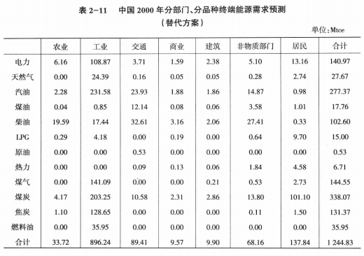 1)在終端用能中,由于增加一次能源投入加工轉(zhuǎn)換的比重,直接燃煤的比例將大大下降。