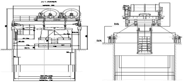 10噸載物和3噸載人立面圖(左圖)及平面圖(右圖)