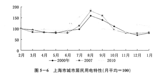 表5-16 上海市2000~2010年居民用電量情況