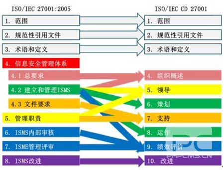 正在修訂中的ISMS的要求標(biāo)準(zhǔn)ISO/IEC27001,將采用ISO/TMB/JTCG MSS的統(tǒng)一結(jié)構(gòu),將原來(lái)的架構(gòu)做比較大的調(diào)整,并采用標(biāo)準(zhǔn)的文本,只是在信息安全方面做相應(yīng)的擴(kuò)充。