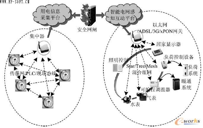 互動(dòng)性作為智能電網(wǎng)的另一個(gè)重要特征,在智能用電環(huán)節(jié)上體現(xiàn)得尤為明顯。而感知作為物聯(lián)網(wǎng)的基本特性,除利用多種手段實(shí)現(xiàn)泛在的物體感知外,還必須充分利用互聯(lián)網(wǎng)和移動(dòng)通信的資源實(shí)現(xiàn)人與物、物與物之間無(wú)所不在的連接與互動(dòng)。作為智能電網(wǎng)互動(dòng)性的集中體現(xiàn),智能用電肩負(fù)著與用戶建立密切、負(fù)責(zé)的交互關(guān)系,實(shí)現(xiàn)供需互動(dòng)的重任。因此,相對(duì)于輸電線路、無(wú)人值守變電站和配電網(wǎng)自動(dòng)化系統(tǒng),面向智能用電的ICT 平臺(tái)要求區(qū)域更廣、業(yè)務(wù)更多的感知與互動(dòng)。這種感知與互動(dòng)的開(kāi)放性和智能電網(wǎng)安全通信的要求是矛盾的,也只有解決了這一矛盾,才能真正找到面向智能電網(wǎng)的物聯(lián)網(wǎng)應(yīng)用模式。