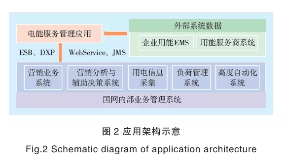 平臺設計的相關功能都需要通過外部系統(tǒng)獲取數(shù)據(jù),因此需要實現(xiàn)和營銷業(yè)務應用系統(tǒng)、用電信息采集系統(tǒng)等9個系統(tǒng)的對接,平臺構(gòu)建了多系統(tǒng)集成的應用架構(gòu),通過接口實現(xiàn)數(shù)據(jù)共享和交互。
