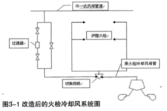 從現(xiàn)場設備和系統(tǒng)布置來肴,冷一次風母管和火檢冷卻風系統(tǒng)位置較近,采用冷一次風提供火檢冷卻風,可以節(jié)省大量管道費用,投資少,改造簡單方便。