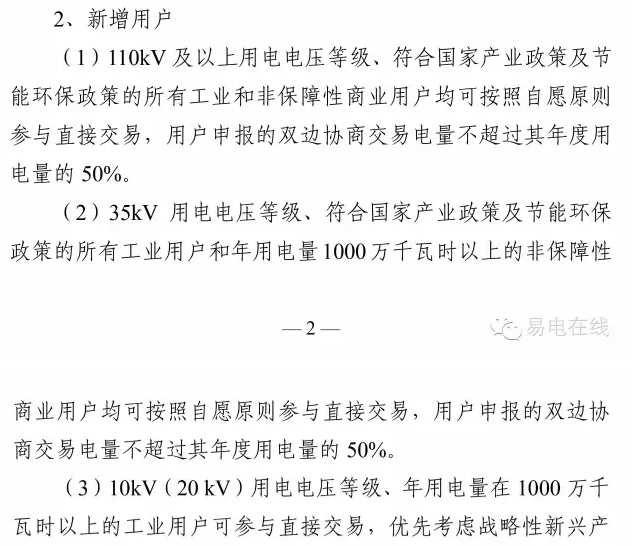 新增用戶申報(bào)的雙邊協(xié)商交易電量不超過其年度用電量的50%。