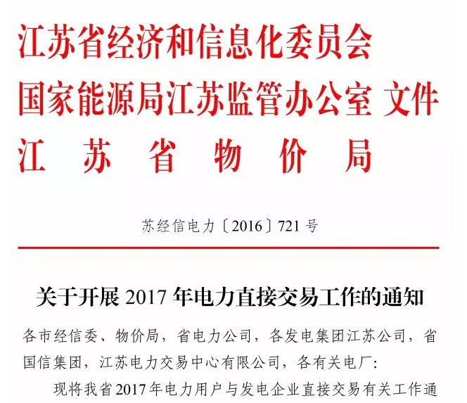 解讀江蘇省2017年直接交易 竟然沒售電公司什么事