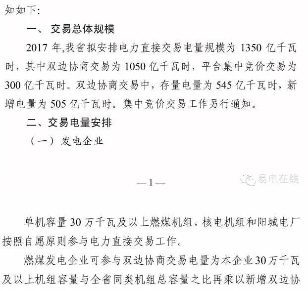 近日,江蘇省經(jīng)信委印發(fā)《關(guān)于開展2017年電力直接交易工作的通知》,總規(guī)模為1350億千瓦時(shí),其中雙邊協(xié)商交易1050億千瓦時(shí),集中競(jìng)價(jià)交易300億千瓦時(shí)??v觀全文,市場(chǎng)主體自由發(fā)揮空間較小,計(jì)劃經(jīng)濟(jì)影子尚存。2