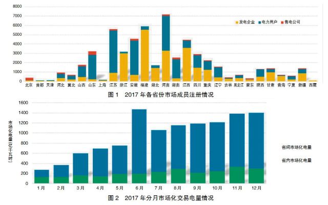 從目前市場主體參與的情況來看,截至2017年底,在國家電網(wǎng)經(jīng)營區(qū)域內(nèi)市場主體的注冊成員達到55700余家,發(fā)電企業(yè)27000余家;電力用戶26000余家,其中大概有近13000家是零售用戶,另外13000余家是直接參與交易的用戶;售電公司注冊2233家。2017年電力用戶和售電企業(yè)注冊數(shù)量呈爆發(fā)式增長,較2016年增長了3.7倍(見圖1)。