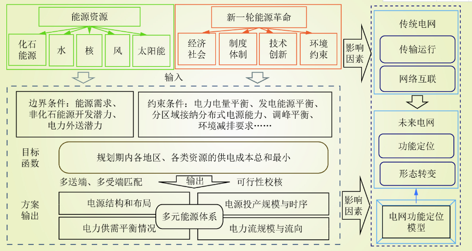 (2)未來電網(wǎng)形態(tài)的演變,受到能源電力系統(tǒng)內(nèi)部和外部經(jīng)濟(jì)、體制、環(huán)境等因素共同影響。未來中國(guó)電網(wǎng)功能將顯著提升,既要滿足能源電力大規(guī)模遠(yuǎn)距離輸送的需要,又要滿足受端地區(qū)多種能源電力協(xié)同運(yùn)行的需要,還要滿足新能源發(fā)展和新型用電服務(wù)的需要。