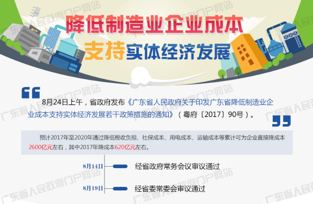 廣東省降低制造業(yè)企業(yè)成本支持實體經(jīng)濟發(fā)展的若干政策措施