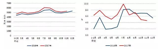 圖4 2016、2017年重點行業(yè)分月用電量情況