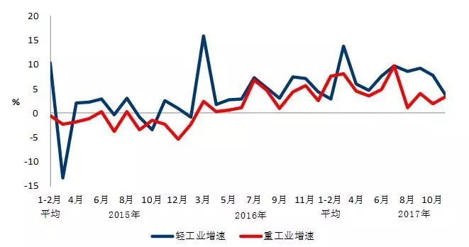 圖 2 2015年以來分月輕、重工業(yè)用電量增速情況