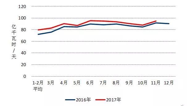 2017年1-11月份,全國電力供需總體寬松。全社會用電量累計增速同比提高,各省份累計用電量均實現(xiàn)正增長;工業(yè)和制造業(yè)用電量同比增長,但增速均低于全社會用電量;高載能行業(yè)用電累計增速同比提高,有色行業(yè)當月用電量連續(xù)三個月負增長;發(fā)電裝機容量增速放緩。。。