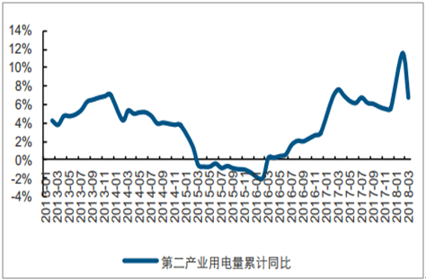 2018年1-3月二產(chǎn)累計(jì)用電量同比增長6.7%