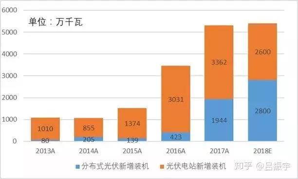 2017年新增分布式光伏裝機同比增長360%,占光伏年新增裝機的40%,實現(xiàn)爆發(fā)式增長;