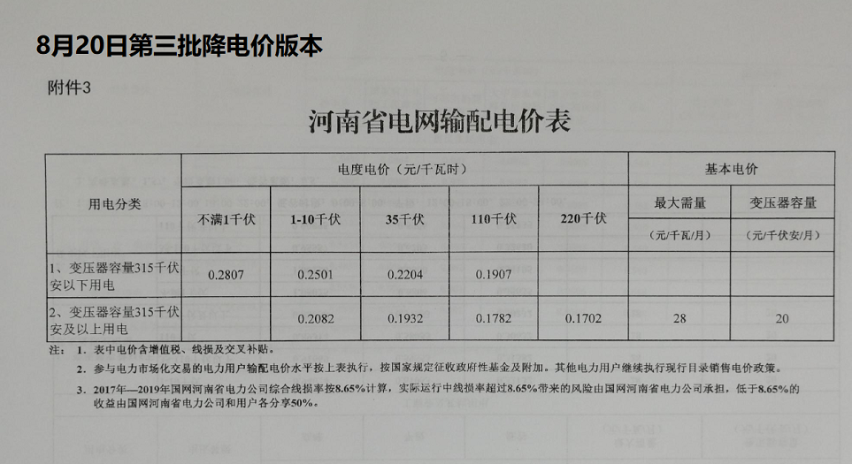 3.河南省電網(wǎng)輸配電價(jià)表