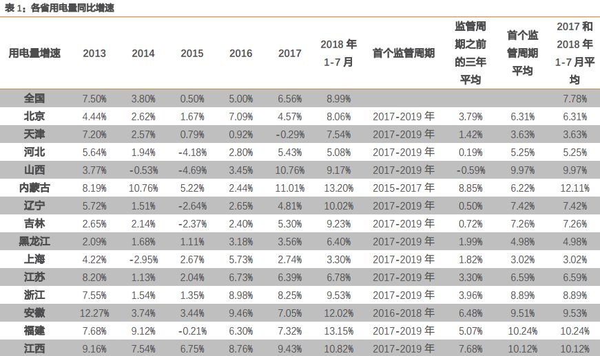 2017年和2018 年1-7月用電量增速超過(guò)預(yù)測(cè)電量增速產(chǎn)生的超收收入:國(guó)家能源局在2016年時(shí)預(yù)測(cè)十三五期間全社會(huì)用電量的年均增速為3.6%-4.8%,我們假設(shè)一般工商業(yè)用電增速與全社會(huì)整體用電量增速相當(dāng),同時(shí)取4.2%為輸配電定價(jià)時(shí)使用的預(yù)測(cè)增速;2017年和 2018年1-7月,全社會(huì)用電量累計(jì)同比增速平均值為7.8%。根據(jù)平均輸配電價(jià)的公式測(cè)算得 2017年1月-2018年7月超收收入約占同期一般工商業(yè)用電總售電收入的1.65%,從全國(guó)的角度看,19個(gè)月一般工商業(yè)用電總售電收入的 1.65%,是一個(gè)很可觀的規(guī)模。