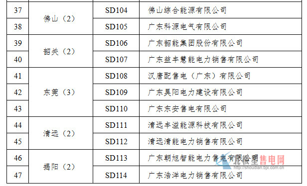 【第三批列入廣東省售電公司目錄的企業(yè)名單——47家】