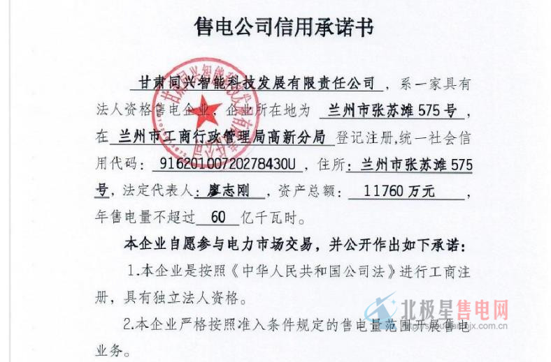 關(guān)于甘肅同興智能科技發(fā)展有限責(zé)任公司注冊(cè)成為電力自主交易市場(chǎng)主體相關(guān)信息的公示