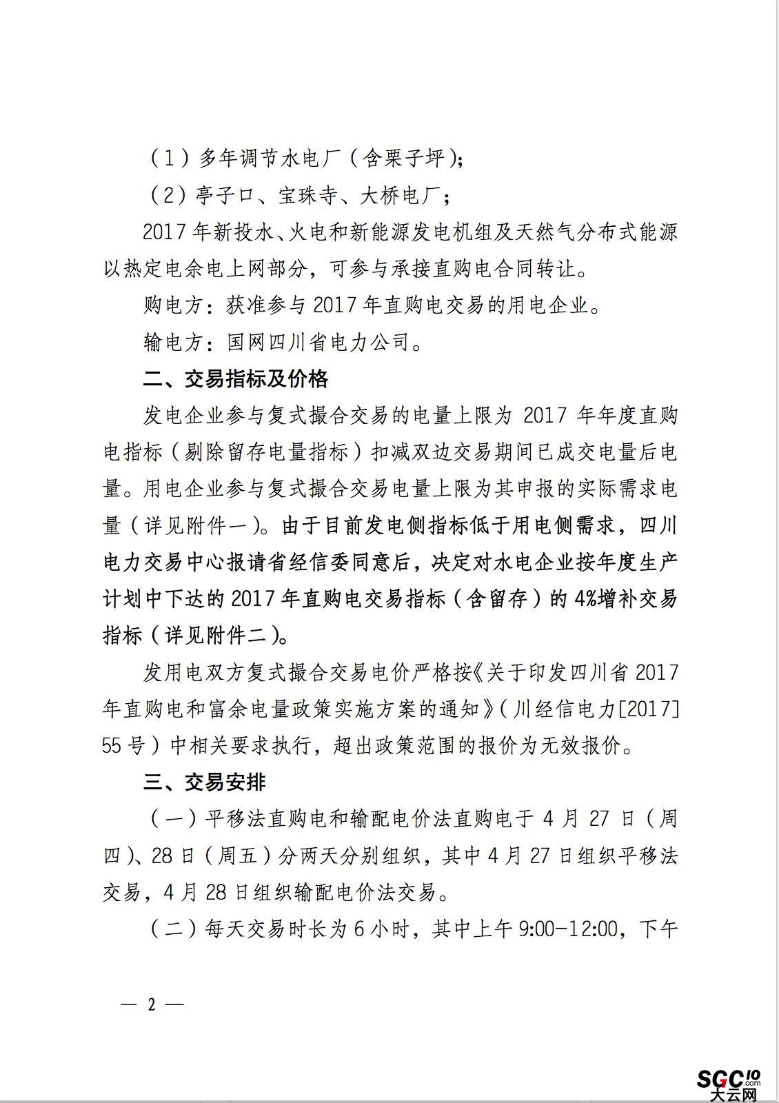 附:四川電力交易中心《關(guān)于開展2017年度直購電平臺復(fù)試撮合交易的公告》原文: