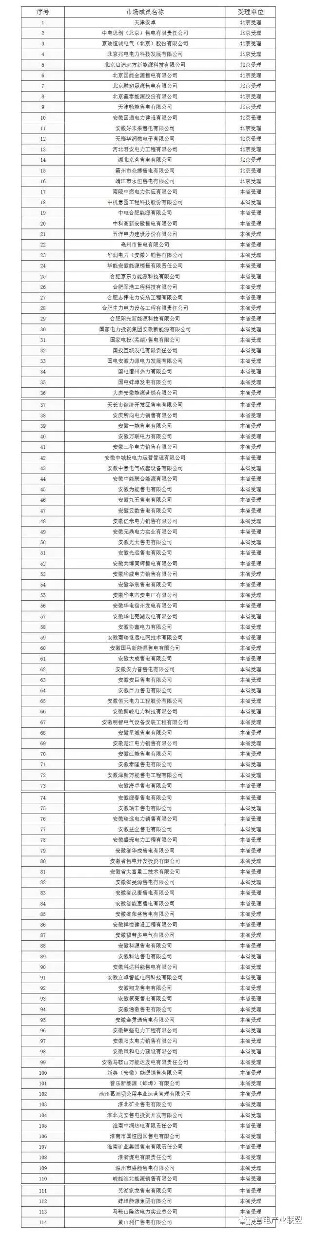 安徽第一批市場準(zhǔn)入的售電公司