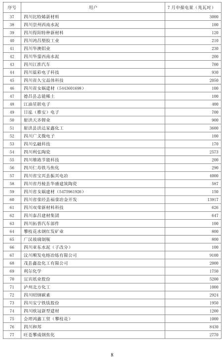 7月四川富余電量交易 370家用戶申報(bào)電量6.29億千瓦時(shí)