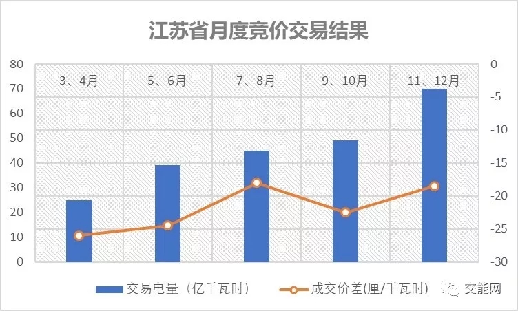 江蘇省在過去一年,從三月份起每兩個月進行一次月度競價交易,從上表可以看出,其交易電量呈線性持續(xù)增加。