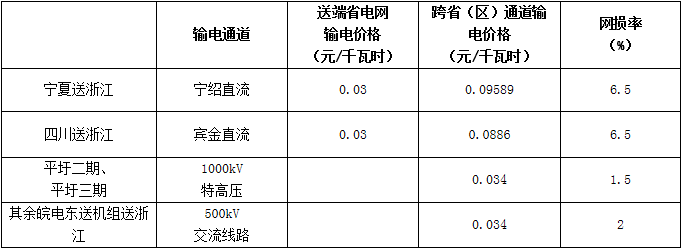 省外發(fā)電企業(yè)送我省相關(guān)輸電價(jià)格及網(wǎng)損率