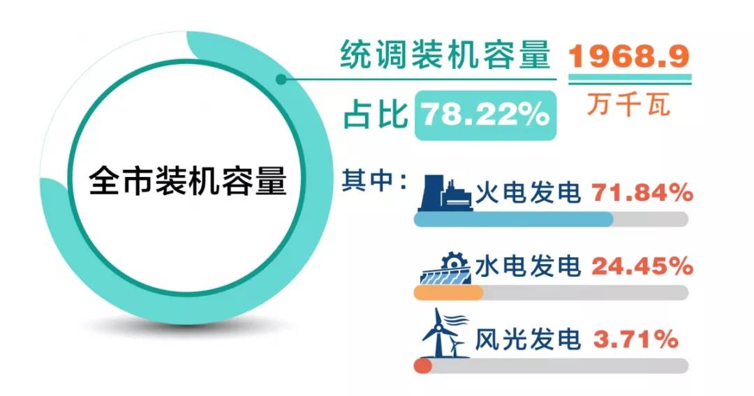 截至9月底,統(tǒng)調(diào)裝機(jī)容量1968.9萬(wàn)千瓦(占全市裝機(jī)容量的78.22%),其中火電、水電、風(fēng)光發(fā)電分別占比為71.84%、24.45%、3.71%。統(tǒng)調(diào)裝機(jī)容量同比增加48.69萬(wàn)千瓦,增長(zhǎng)2.54%。其中,火電減少3.64萬(wàn)千瓦,減少0.26%;水電增加20.48萬(wàn)千瓦,增長(zhǎng)4.44%;風(fēng)光發(fā)電增長(zhǎng)31.85萬(wàn)千瓦,增長(zhǎng)77.3%。