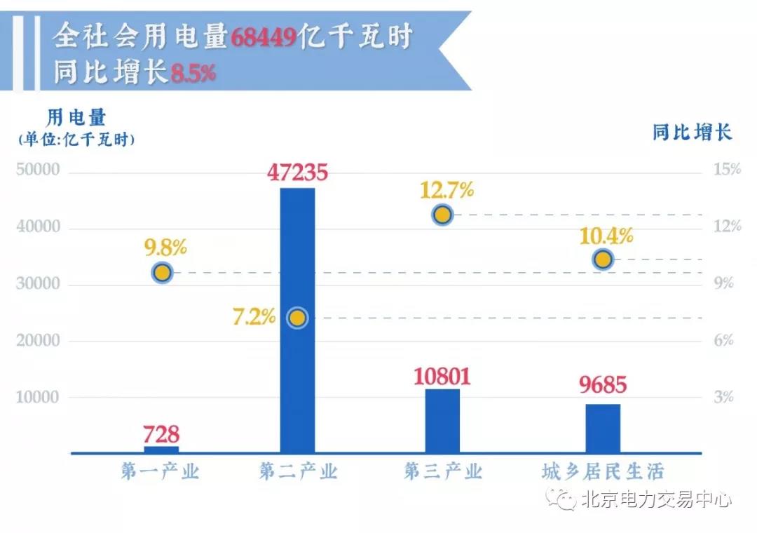 2018年,全社會(huì)用電量68449億千瓦時(shí),同比增長8.5%。
