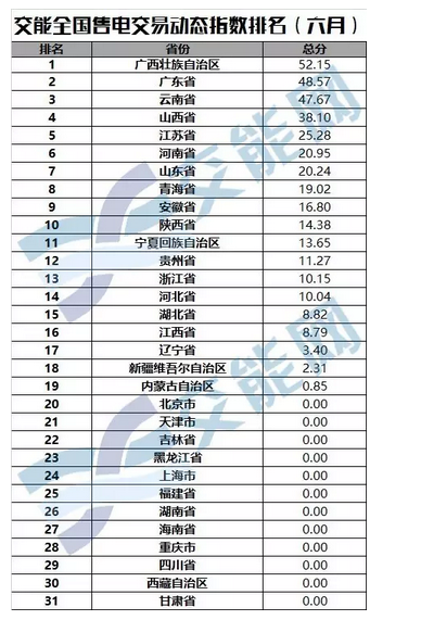 排名靠前的幾個省份與我們印象中電力交易比較活躍的省份吻合度較好,交能網(wǎng)收集了全國31個地區(qū)的真實電力交易結(jié)果,以數(shù)據(jù)證明電力交易的發(fā)展動態(tài)。從各分項來看: