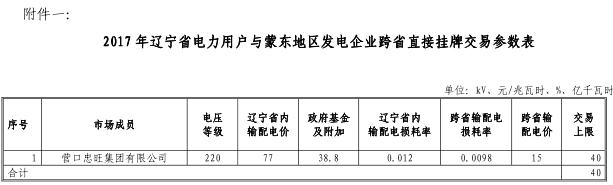 遼寧電力交易中心發(fā)布了2017年遼寧省電力用戶與蒙東地區(qū)發(fā)電企業(yè)跨省直接掛牌交易的通知(第一筆 第二輪),本次交易參與的市場成員為經(jīng)政府有關(guān)部門核準(zhǔn)的電力用戶和火電企業(yè),交易預(yù)計交易需求預(yù)計為40億千瓦