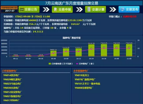 7月云南送廣東月度增量掛牌交易結(jié)果:10家電廠成交量5.3518億千瓦時(shí)