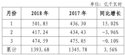 2018 年一季度,全省全社會(huì)用電量完成 1393.68 億千瓦時(shí),同比增長(zhǎng) 3.56%。