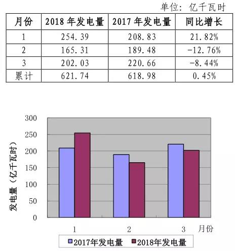 發(fā)電量完成 621.74 億千瓦時(shí),同比增長(zhǎng) 0.45%。