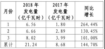 一季度,全省光伏發(fā)電量(含分布式光伏)完成 21.24億千瓦時(shí),同比增長(zhǎng) 144.70%。