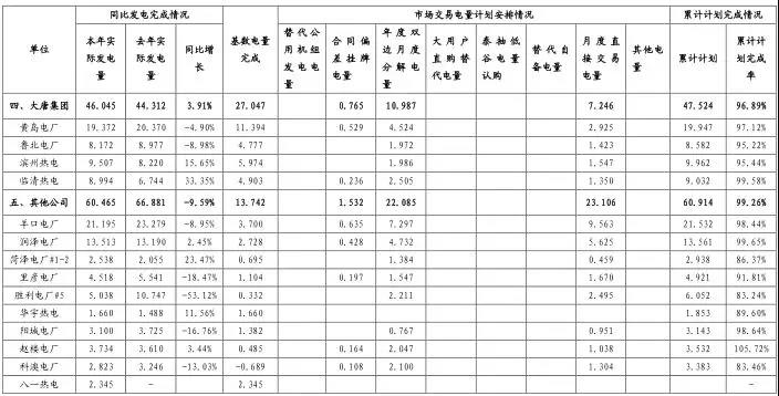 章丘電廠(計(jì)劃完成率 105.73%)、趙樓電廠(計(jì)劃完成率 105.72%)、滕州熱電(計(jì)劃完成率 103.92%)、沾化電廠(計(jì)劃完成率 103.07%)、煙臺(tái)電廠(計(jì)劃完成率 102.75%)、南定熱電(計(jì)劃完成率 101.75%)、濰坊電廠(計(jì)劃完成率 100.54%)、華德電廠(計(jì)劃完成率 100.33%)、萊州電廠(計(jì)劃完成率 100.26%)。