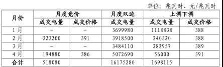 ⑵ 月度直接 交易情況:根據(jù)山東省電力直接交易工作安排,山東電力交易中心組織開(kāi)展了山東省 2018 年月度交易及上調(diào)下調(diào)交易。完成2月、4月電力直接交易(集中競(jìng)價(jià)),成交電量5.18億千瓦時(shí);完成 1-4 月電力直接交易(雙邊協(xié)商),成交電量 161.75億千瓦時(shí);完成 4 批次省內(nèi)中長(zhǎng)期交易合同偏差電量預(yù)掛牌交易,成交電量 16.98 億千瓦時(shí)。交易結(jié)果詳見(jiàn)“山東電力交易中心信息發(fā)布網(wǎng)站”(網(wǎng)址:http://pmos.sd.sgcc.com.cn)。